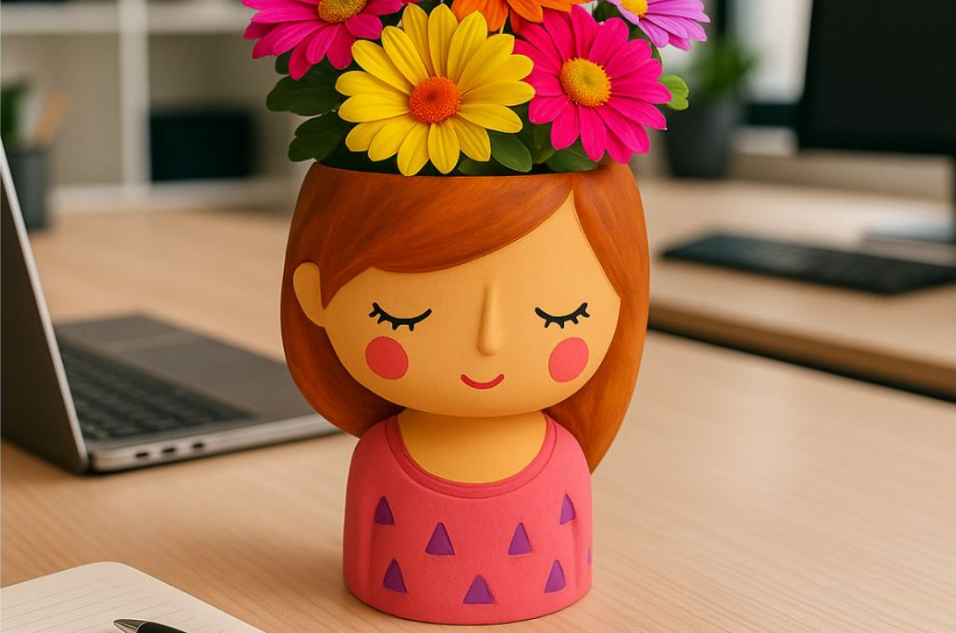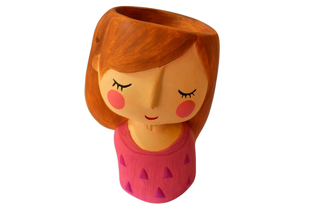 Succulent Kız Saksı: kız figürlü şirin saksı, çiçek ve sukulentler için uygundur. Çocukların boyama keyfini yaşatırken dekoratif ve öğretici bir etkinlik sunar.