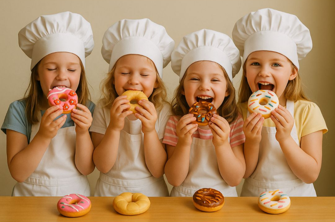 Donat Temalı Minik Şef Seti : Oyun donatları, şef şapkası ve önlükle tamamlanan set; çocukların yaratıcılığını, el-göz koordinasyonunu ve paylaşma becerilerini keyifle geliştirir.